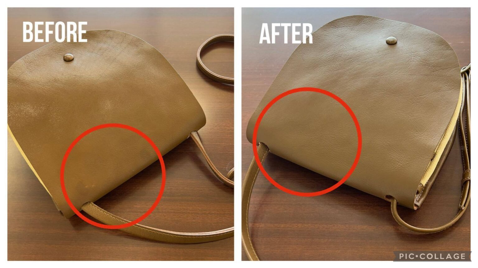 ショルダーバッグ革部分の色補正 2023.08.25 カテゴリー: 修理・リペア タグ: 色補正(ダークアップ加工) 📸ショルダーバッグ革部分の色補正👜 📝消毒液が革についてしまいシミができてしまった💦同じ経験ある方いらっしゃいますよね….そんなバッグを、風合いがどうしても変化しますがお化粧するイメージで綺麗にさせていただきました✨ 消毒を頻繁にするからこそ、皮革製品に限らず消毒液の付着にはお気をつけください🙇🏻♂️しみや変色といった原因になりますので。 これは治らないかも、、と諦めずに当店に是非、ご相談ください‼️