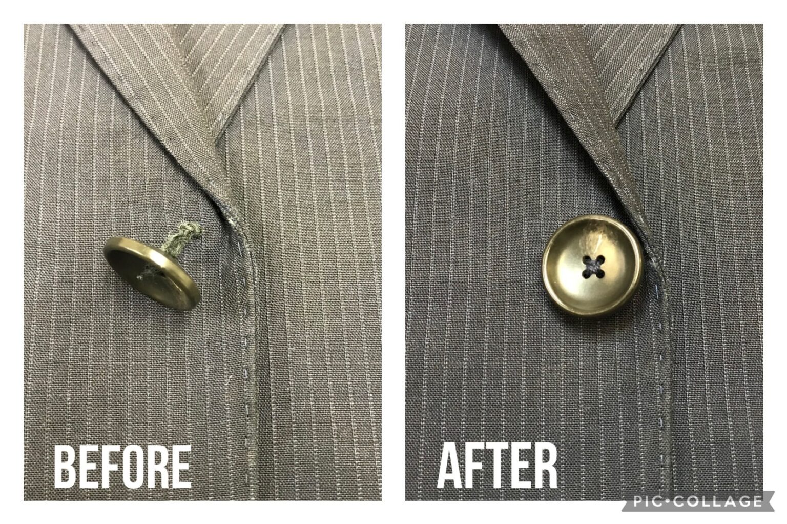 📸ジャケットの第一ボタン付け直しをいたしました🪡