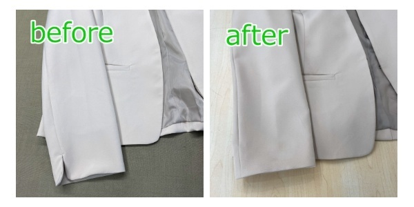 ジャケット・袖丈上げの対応事例 2023.08.27 カテゴリー: 修理・リペア タグ: キズ・穴・やぶれ・ほつれ修理 📸ジャケット・袖丈上げの対応事例 📝ジャケット・袖の丈上げをさせていただきました。袖が少し長い事と袖口のデザインを変えたいとのご希望でしたので袖口のスリットをなくして縫い閉じる筒袖をお勧めしました。袖口が気にならなくなって良かったと喜んでいただけました。出来るだけお客様のご要望に合わせてお直しさせていただきます。