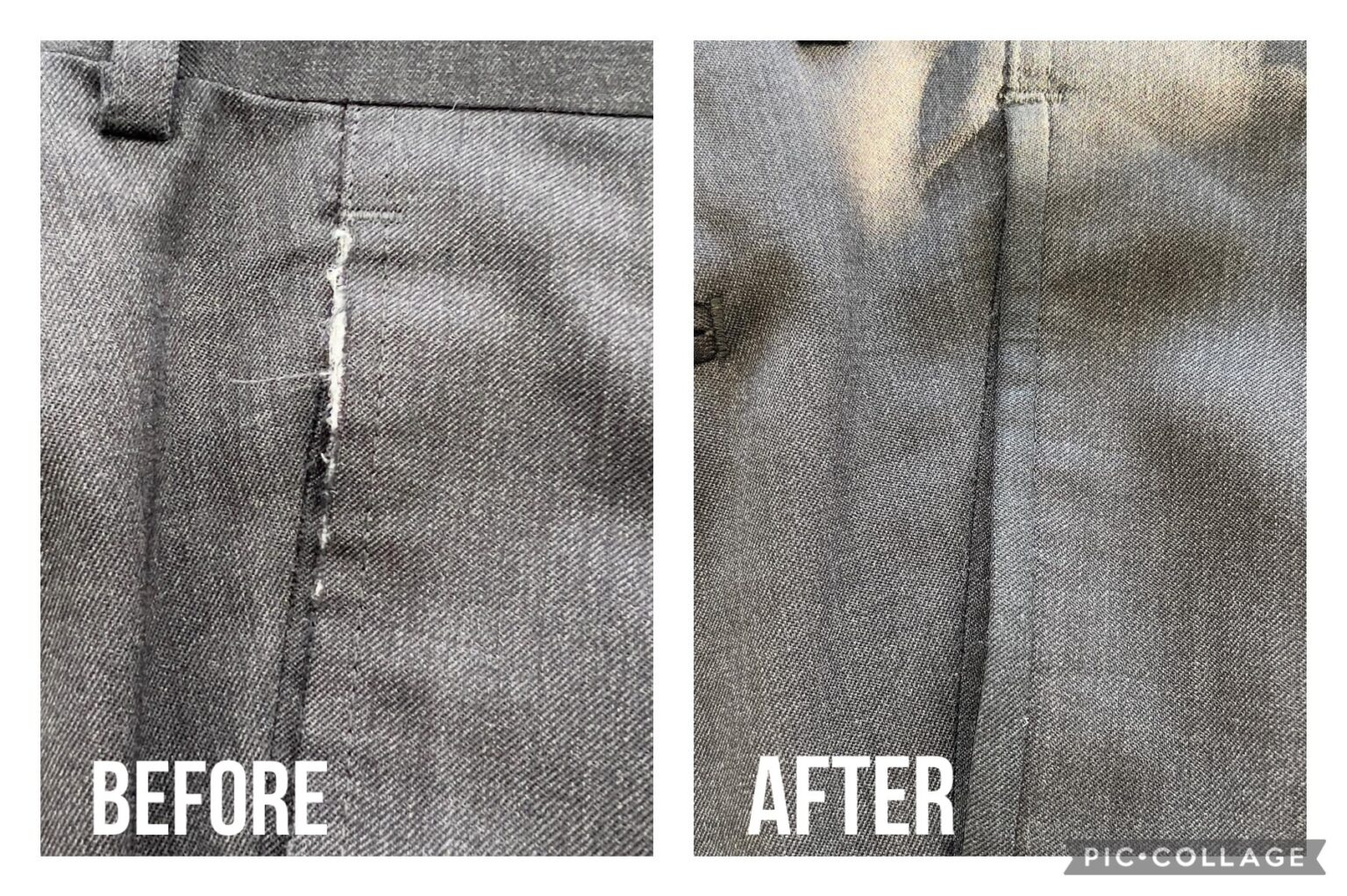 スラックスポケット口の擦り切れ修理 2023.08.27 カテゴリー: 修理・リペア タグ: キズ・穴・やぶれ・ほつれ修理 📸スラックスポケット口の擦り切れ修理 📝長年の着用で、ポケット口が擦れて生地がなくなり破れてしまったお品物。同じ色の布を上から当てて違和感のないよう綺麗に修理させていただきました♫
