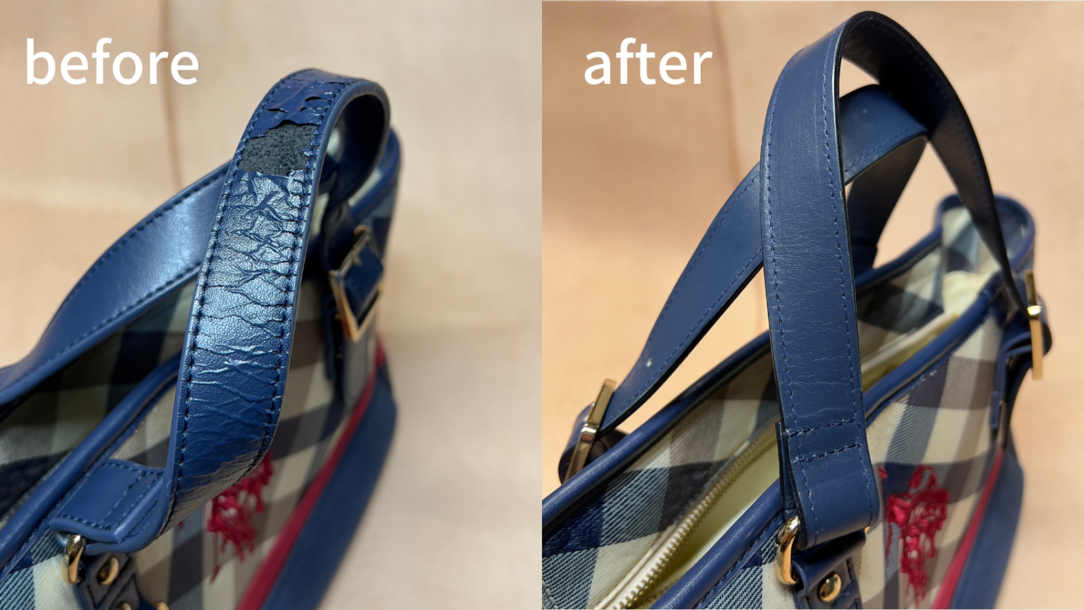 バックの持ち手が経年変化により剥離