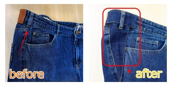 📝パンツのウエストを14㎝出しました。重ね着や座って仕事をされるのにゆとりが欲しいとのご希望にお応えしました。お洋服を購入する際の試着は全身のバランスやサイズの確認をされるくらいですよね。出来ればイスに座った時の履き心地も確かめる事おすすめします。