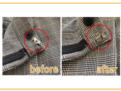 📸パンツ鍵ホックほつれの対応事例 2023.08.29 カテゴリー: 修理・リペア タグ: キズ・穴・やぶれ・ほつれ修理 📸鍵ホックのフックのほつれを付け直しいたしました。 📝力がかかる場所なので、糸🧵をしっかり引き締めて仕上げました。 ご自分のパンツのホック、時々は付け根のチェックをお願いします。