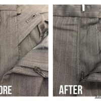 📝スラックスのファスナー交換をさせていただきました♫ コイルファスナーの破損で閉まらなくなってしまったファスナーも、この通り全交換で元通り✨ お気に入りのスラックスもこれで長く着用していただけます。