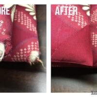 📝どうしても、お財布などを入れたりしていると 負荷がかかるところなので敗れてしまいますが、 このように綺麗に元通り✨