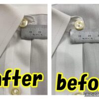 📝ワイシャツの第一、第二ボタンの取り付け位置を 移動いたしました。 首周りにゆとりが出て着やすくなりました♪ わずかな事でも、気になったら、みつみにご相談くださいね