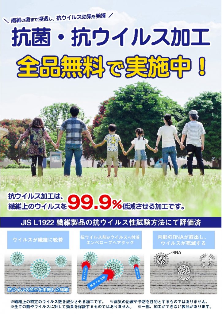 みつみでは、クリーニングを通して「安心と安全」をお届けします! 繊維の奥まで浸透し、抗ウイルス効果を発揮する 「抗菌・抗ウイルス加工」を全品無料でご提供♪ ※抗ウイルス加工は、繊維上のウイルスを99.9%低減させる加工で […]