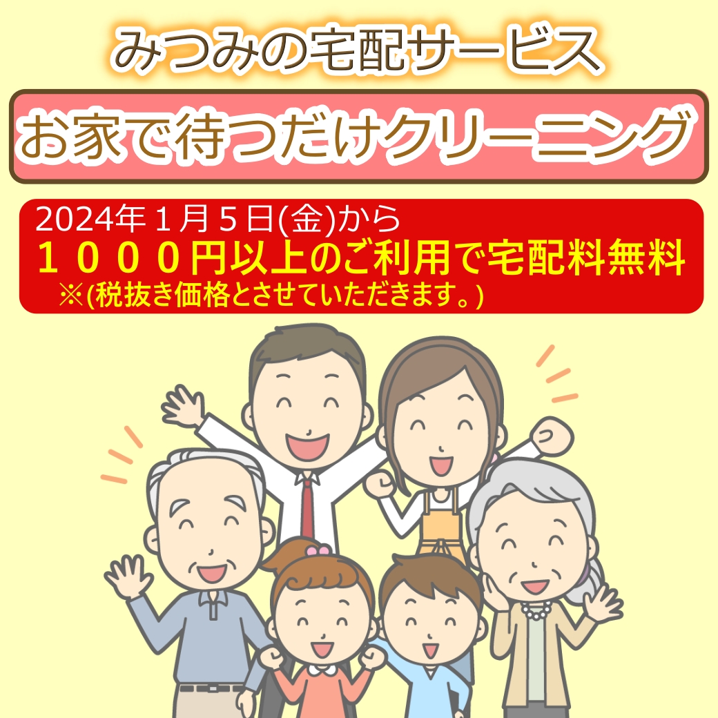 クリーニング店に行く時間がない… 仕事に追われる日々、気づけば洗濯物が積み上がっている…そんなとき、**みつみの宅配クリーニングサービス**なら、ご自宅やオフィスまで集配対応✨ ご利用料金について 1000円(税抜)以上 […]