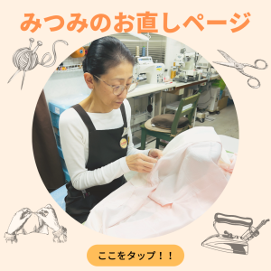 みつみ お直し工房です。 この度、【mitsuminoonaoshi】で、インスタを開設しました。 インスタでは、皆様に役に立つお直し工房からの提案や、お直しの参考になる事例などをご紹介します。 ご覧いただいている皆様に […]