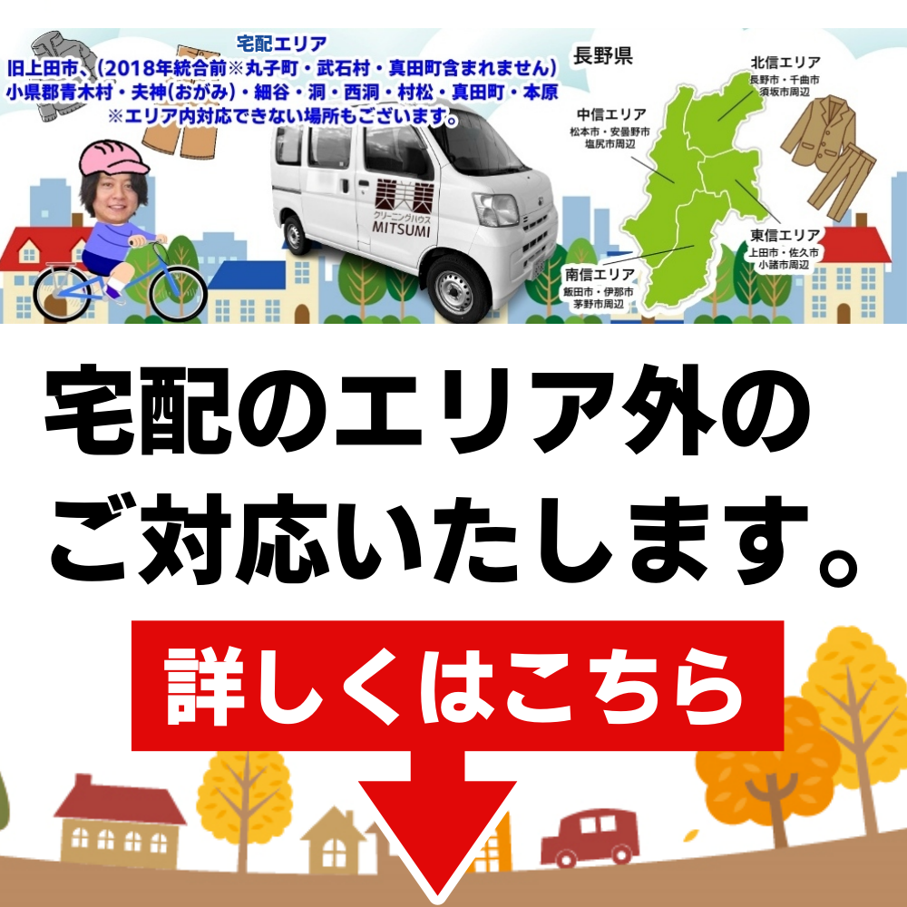 宅配対応エリア 旧上田市、(2018年統合前※丸子町・武石村・真田町含まれません) 小県郡青木村・夫神(おがみ)・細谷・洞・西洞・村松・真田町・本原 傍陽 ※エリア内対応できない場所もございます。